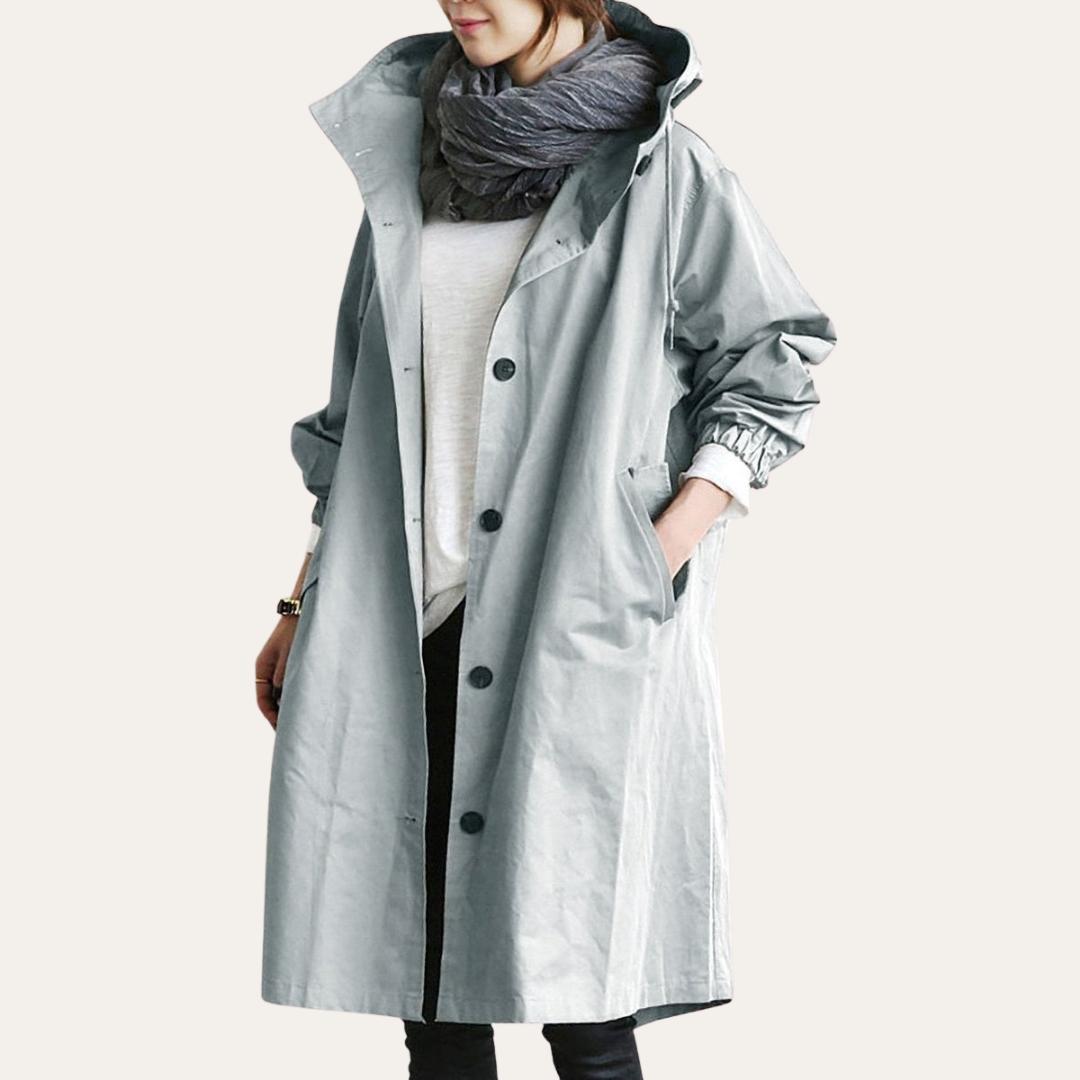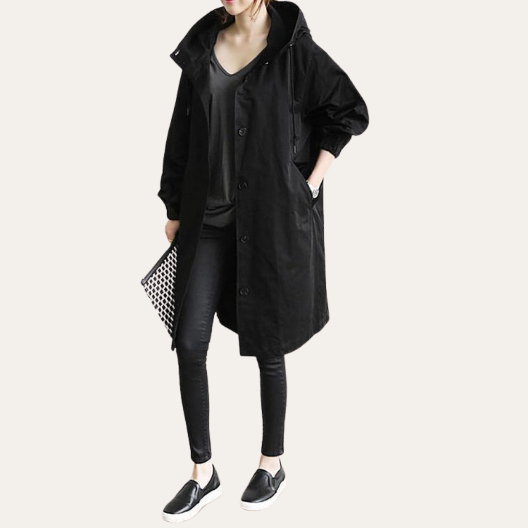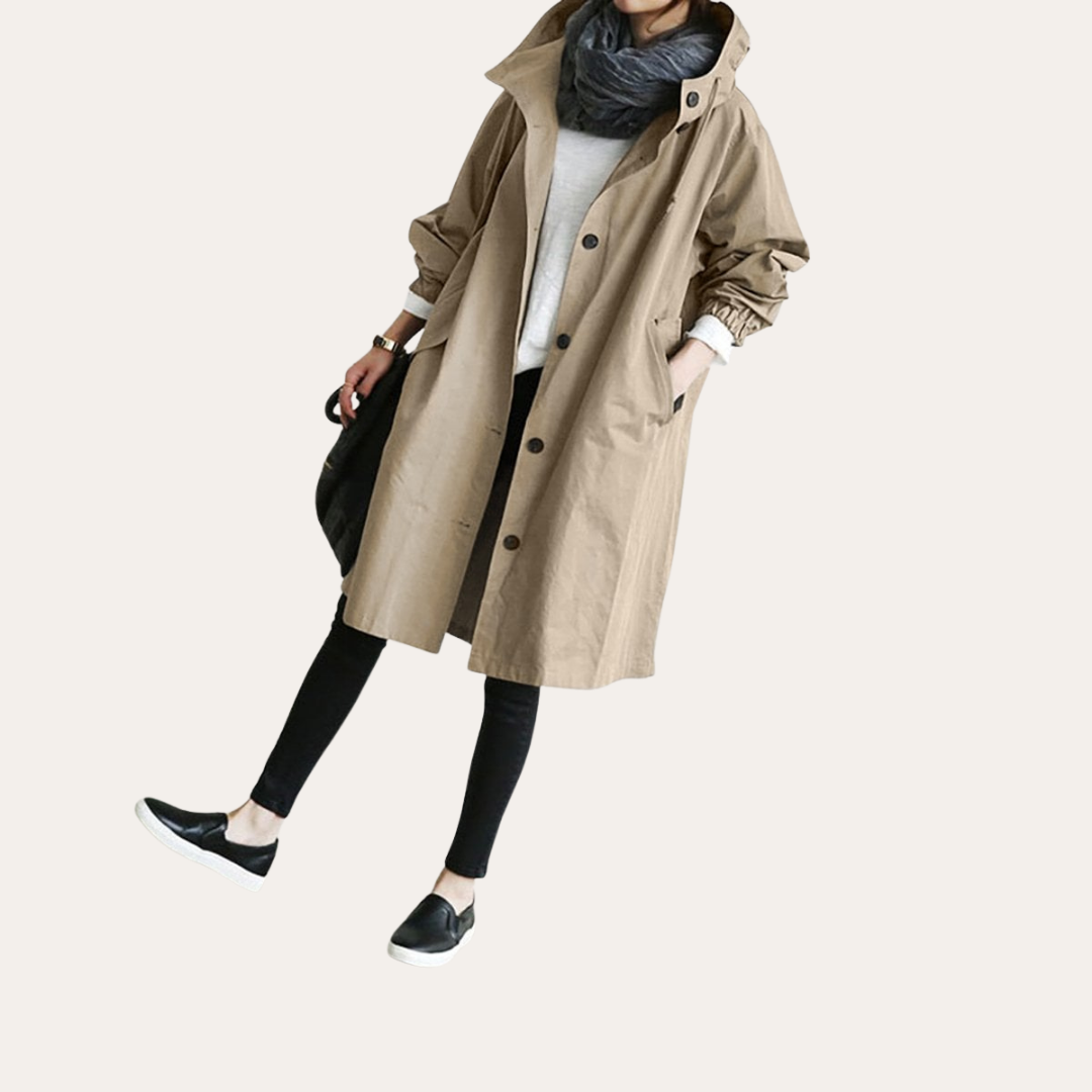 Damen Übergangsmantel mit Kapuze und Knöpfen | Vestea