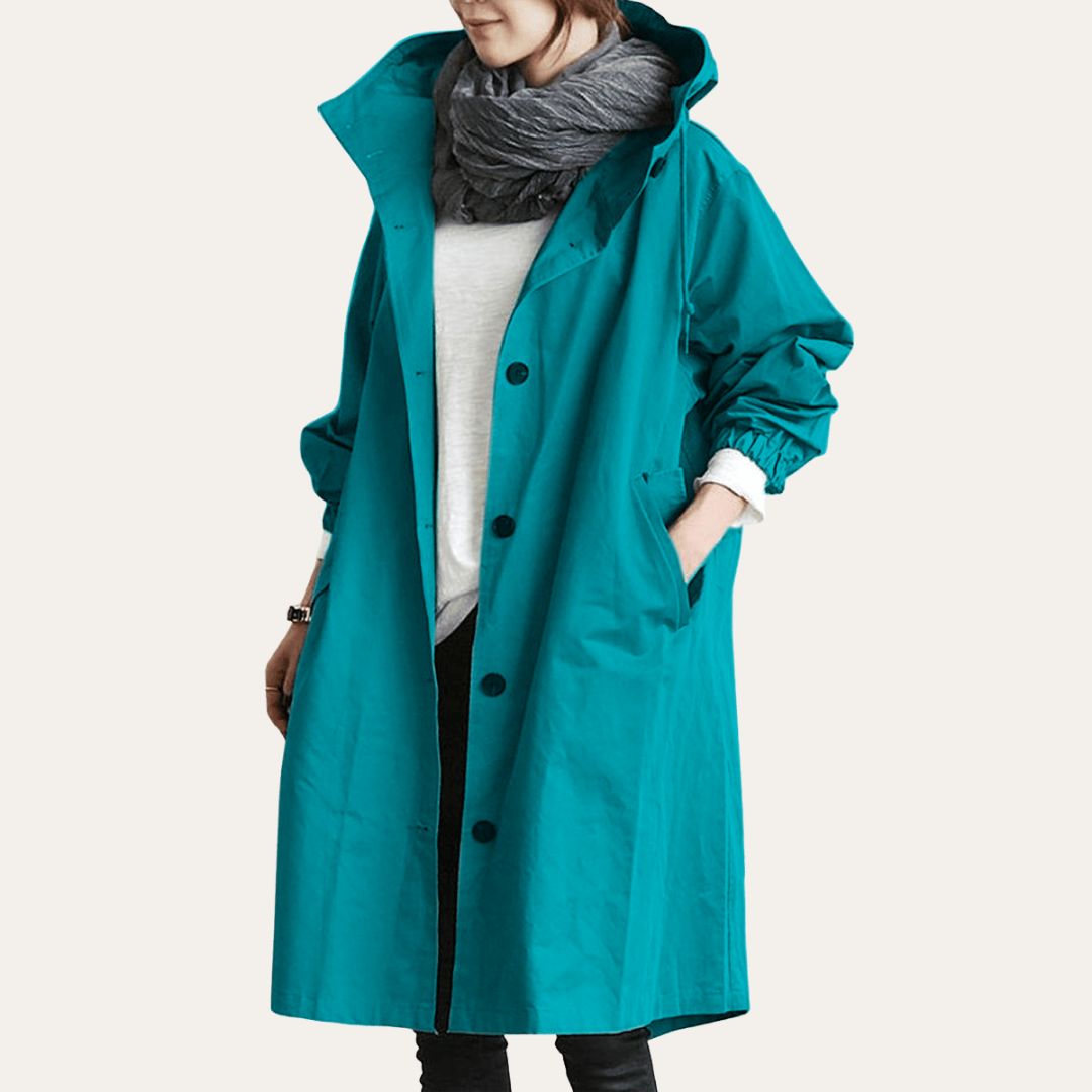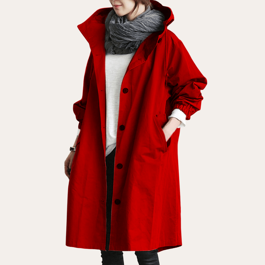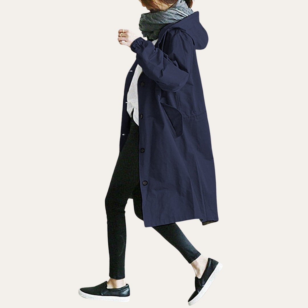 Damen Übergangsmantel mit Kapuze und Knöpfen | Vestea