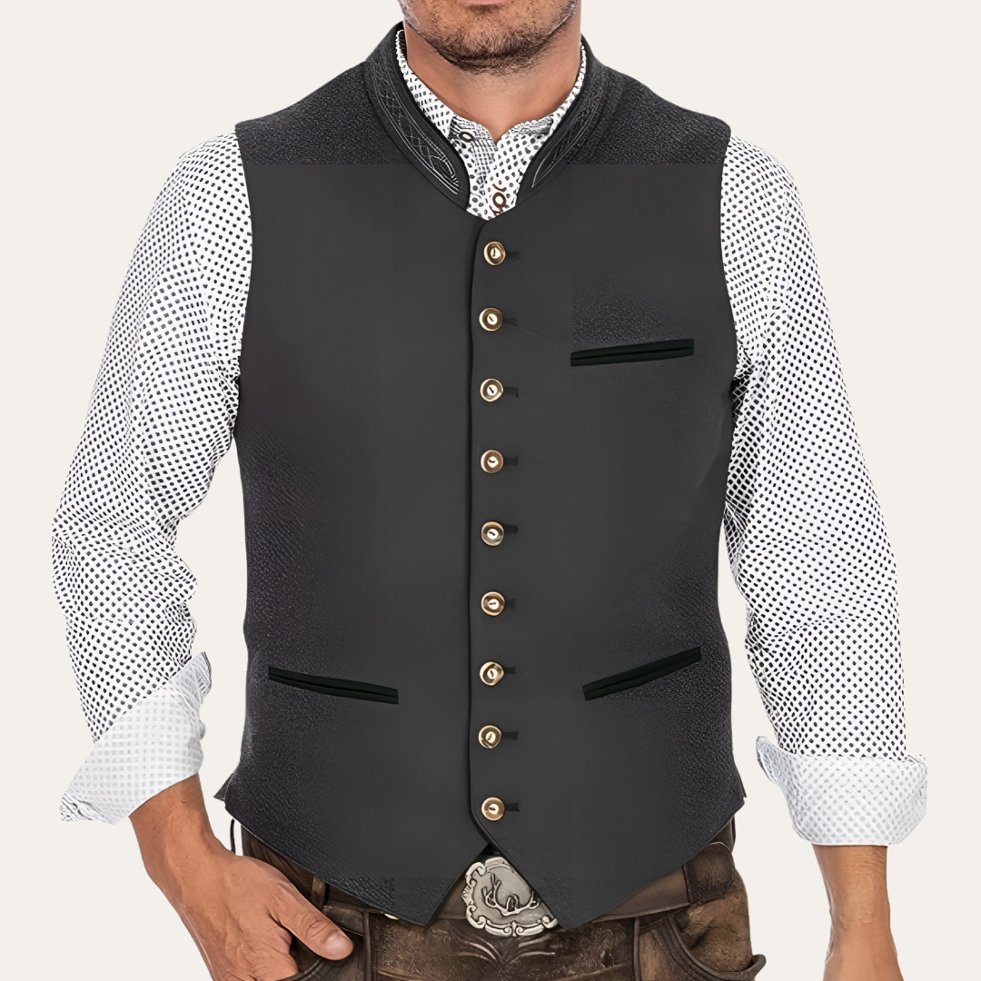 Herren Trachtenweste mit Stehkragen Knopfleiste | Vestea
