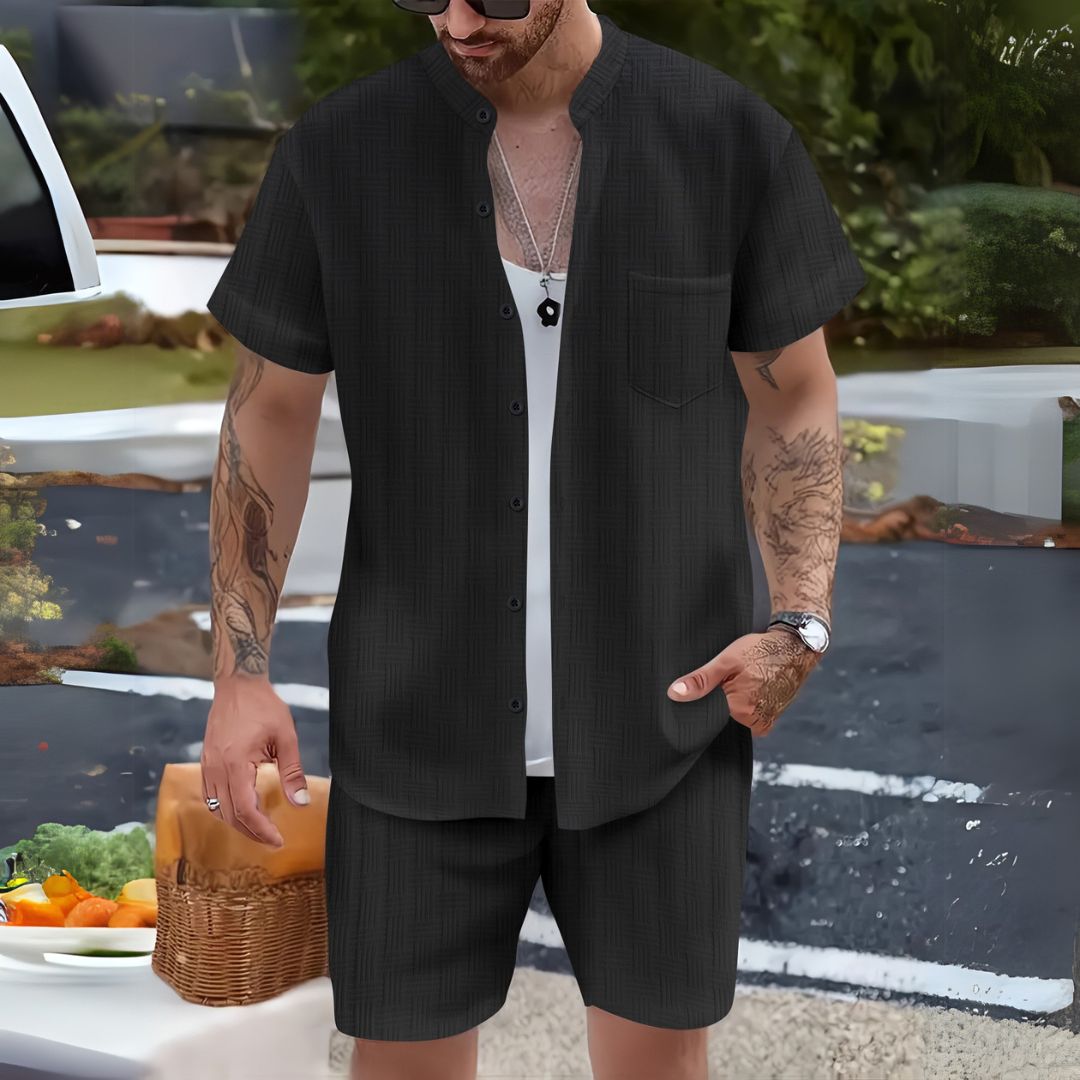 Herren Kurzarm Hemd Shorts Set Baumwolle | Vestea