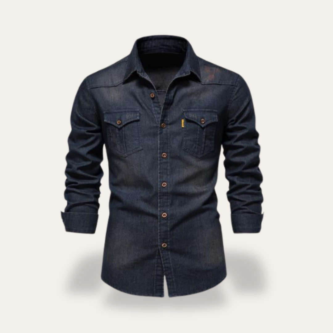Herren Jeanshemd Langarm Freizeit Denim Hemd | Vestea
