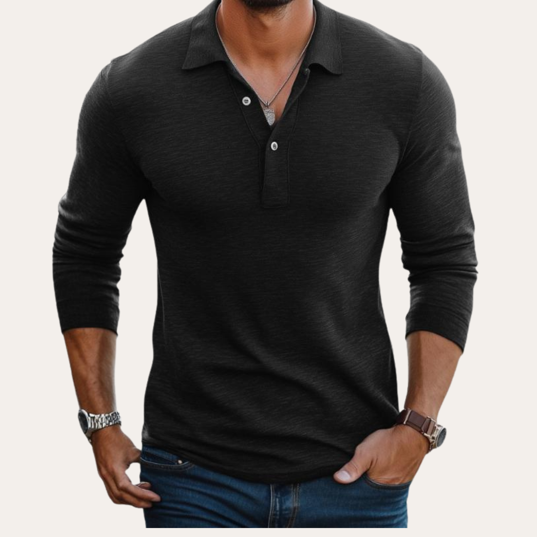 Herren Langarm Poloshirt atmungsaktiv mit Knopfleiste | Vestea
