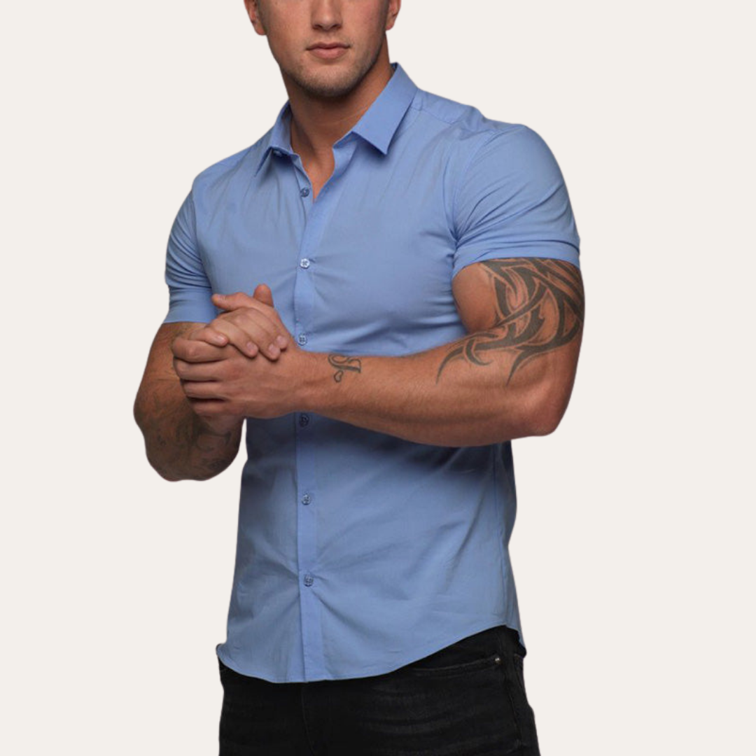 Herren Kurzarm Slim Fit Hemd Stretch Business | Vestea