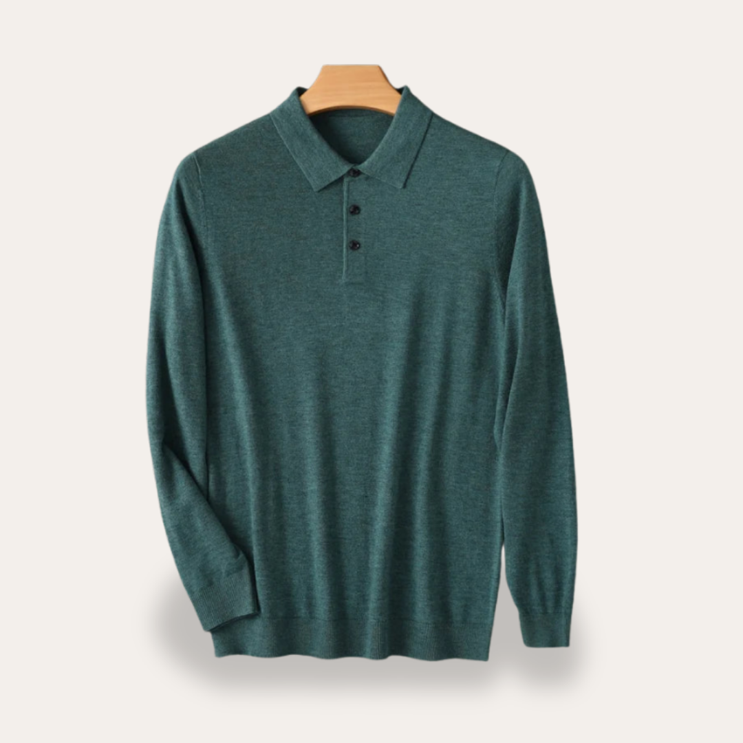 Herren Strickpolo Langarm Klassisch Kragen Shirt Freizeit | Vestea