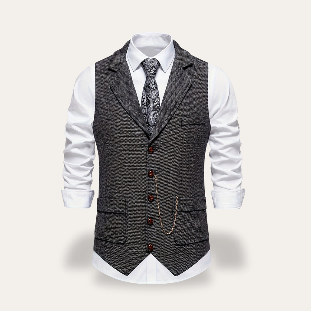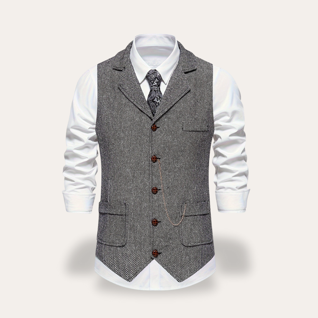 Herren Tweed Weste Anzugweste Slim Fit mit Knopfverschluss | Vestea