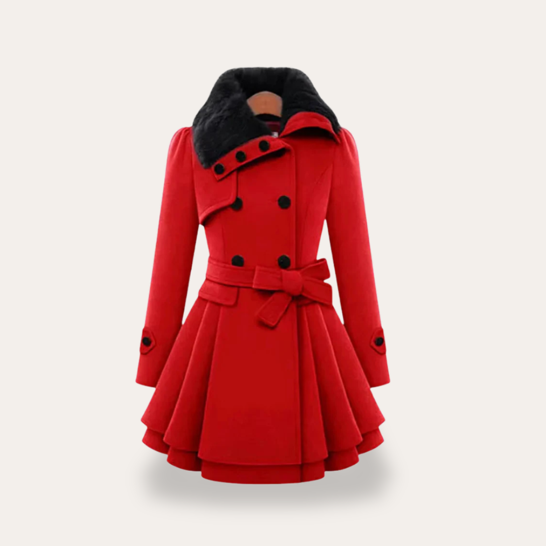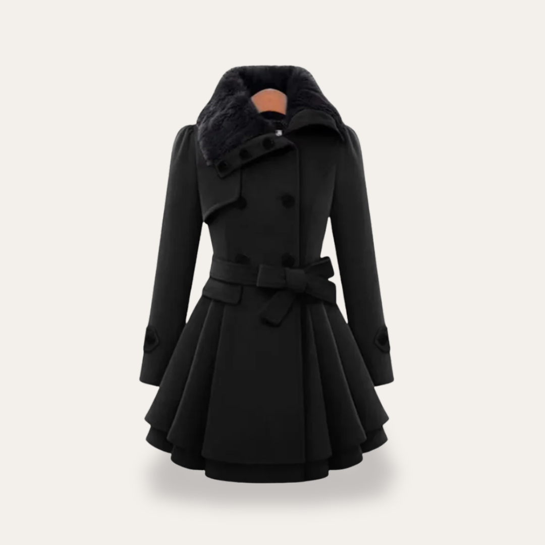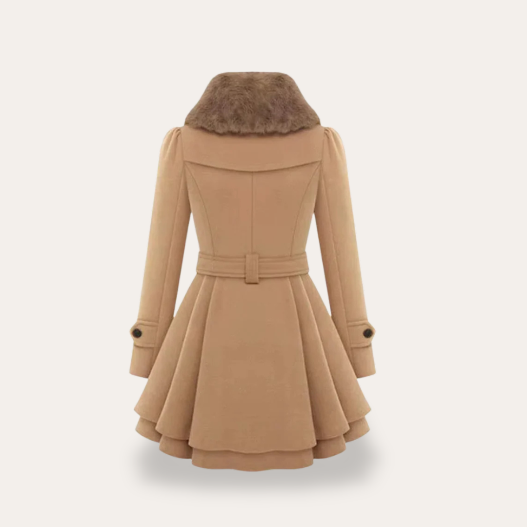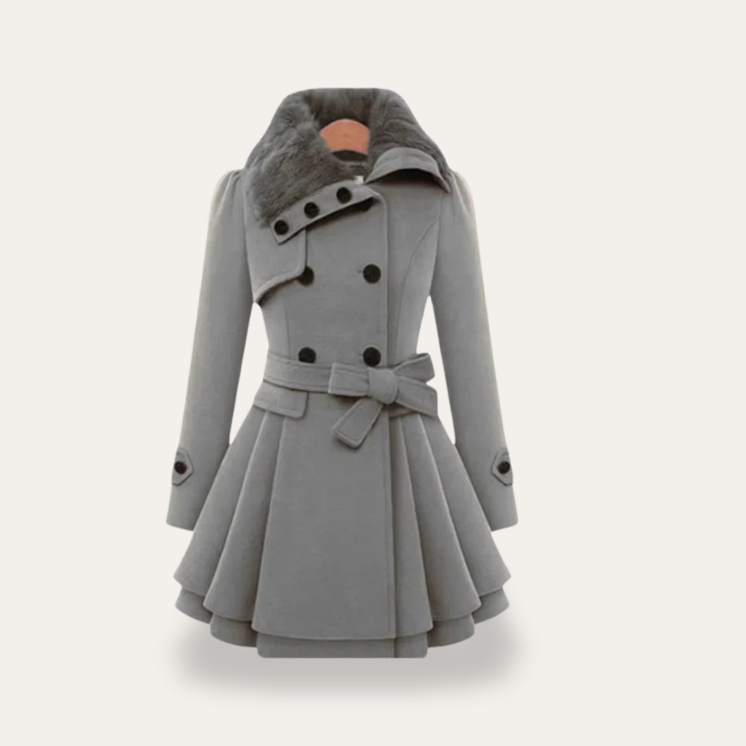 Damen Wollmantel mit Gürtel und Pelzkragen Wintermantel | Vestea