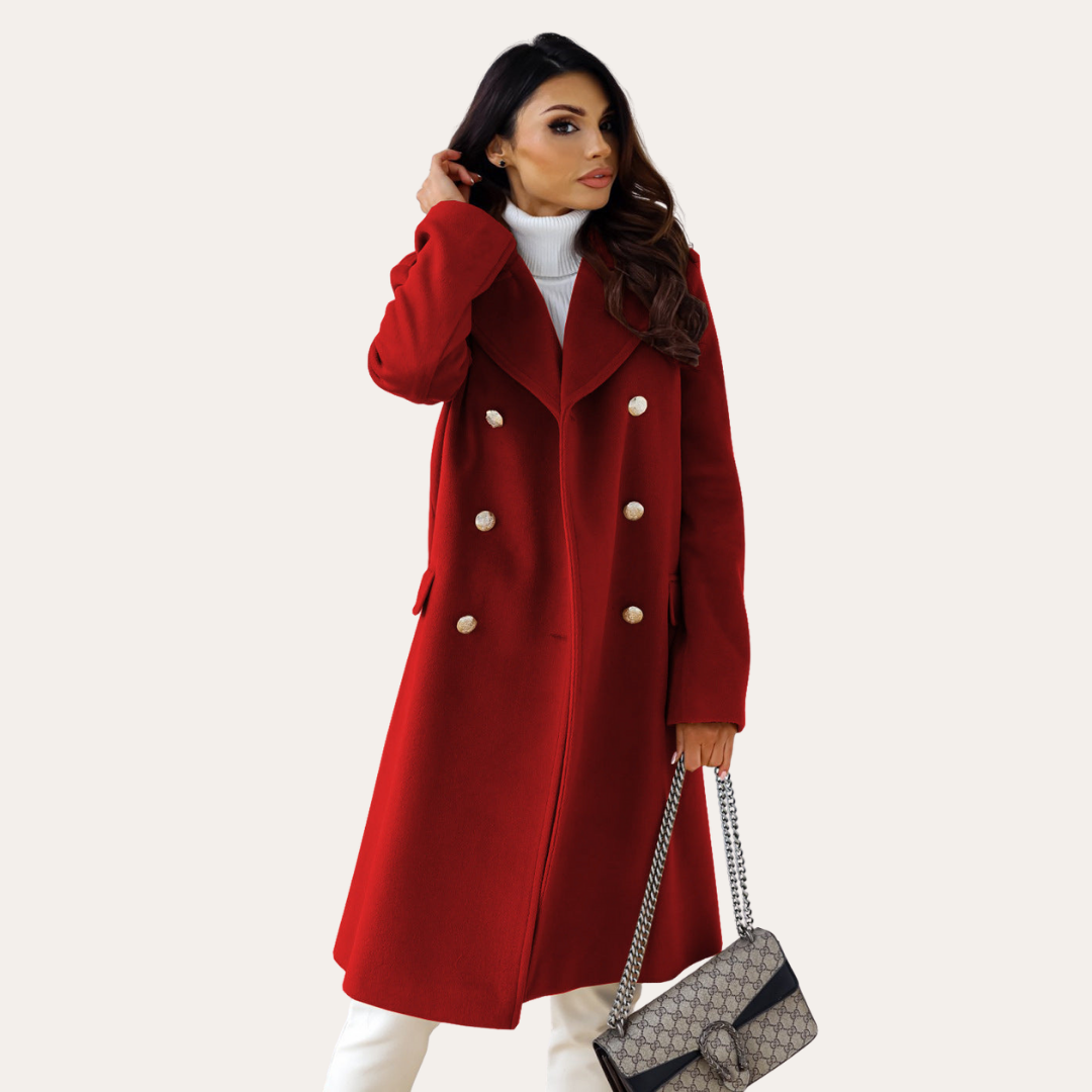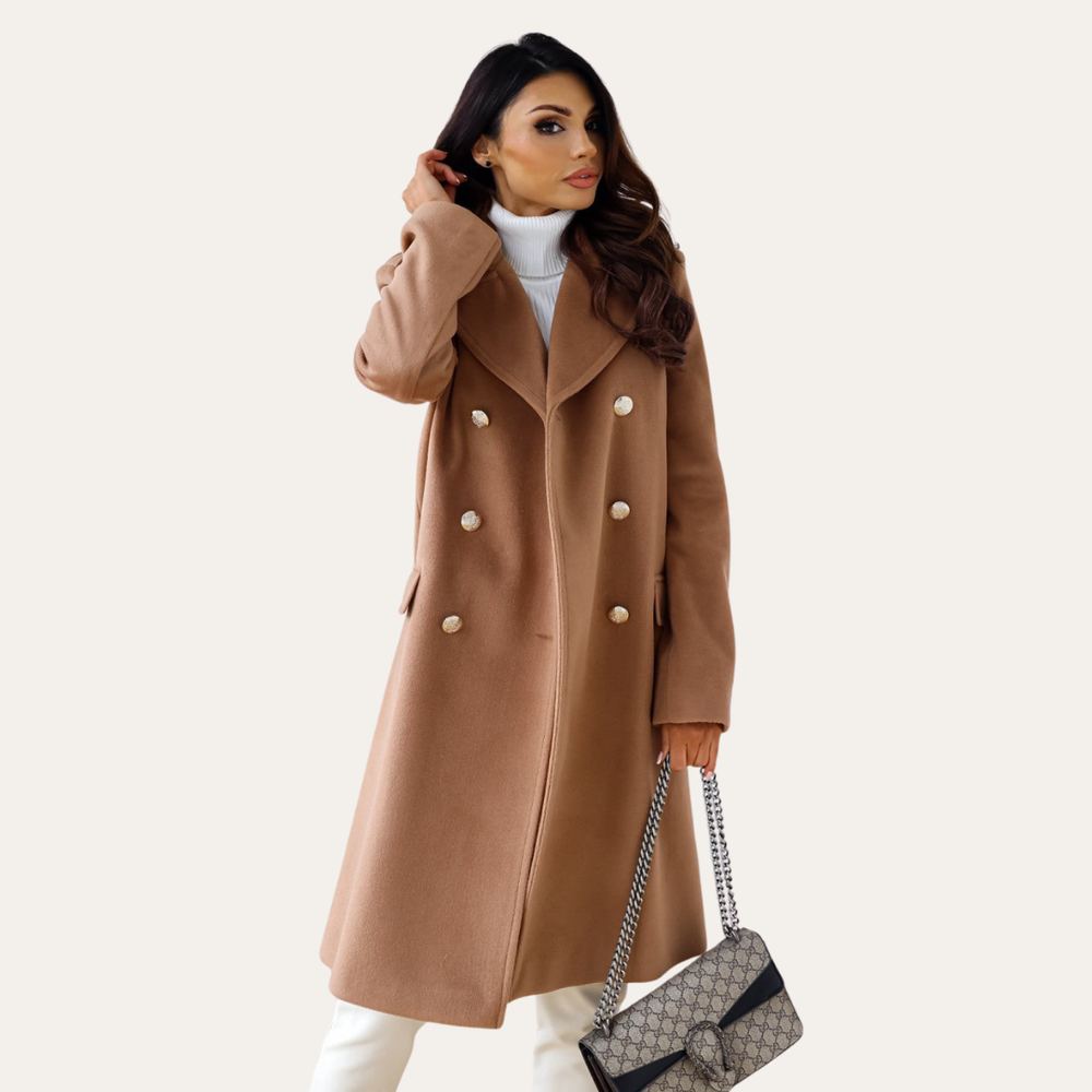 Damen Wollmantel Doppelreiher mit Goldknöpfen | Vestea
