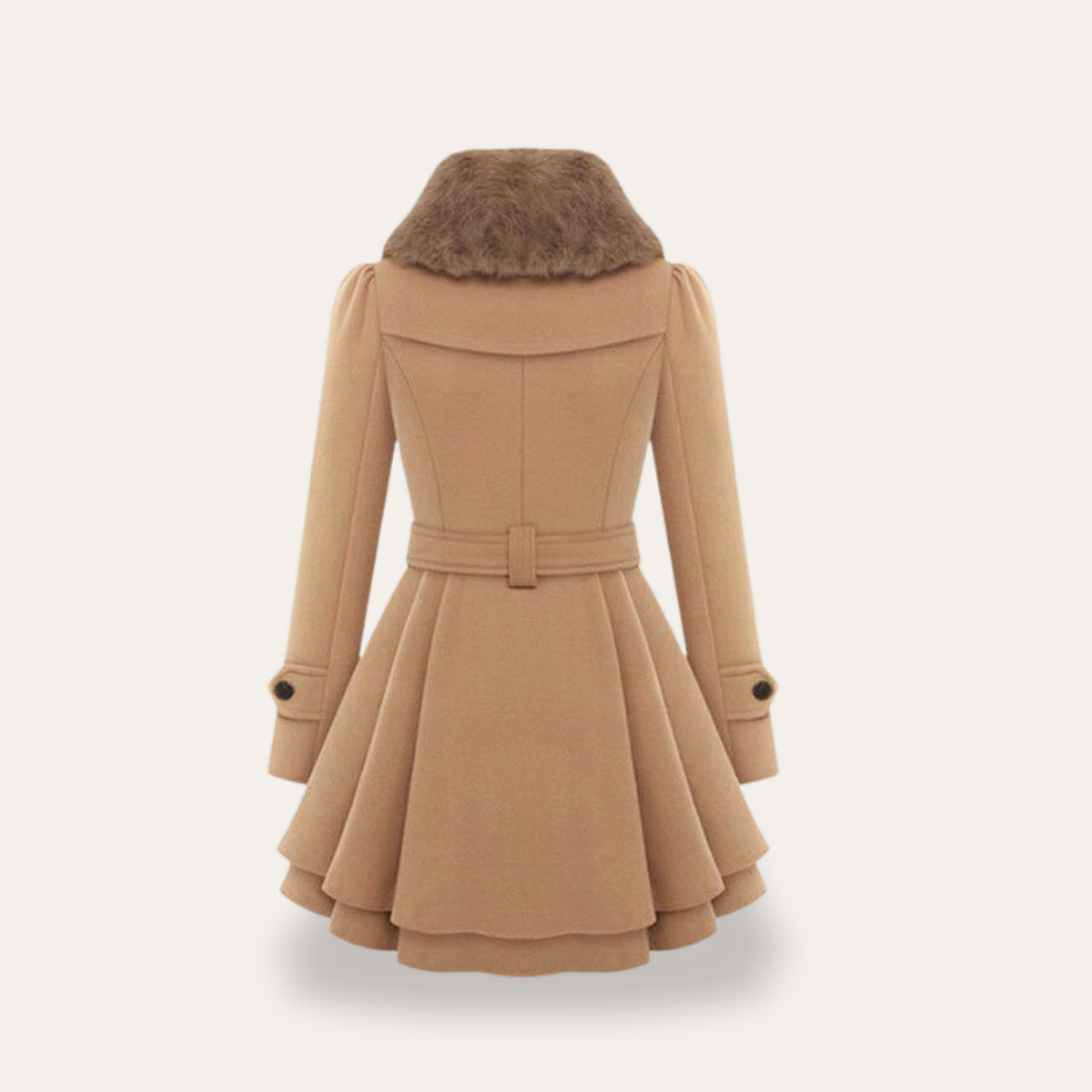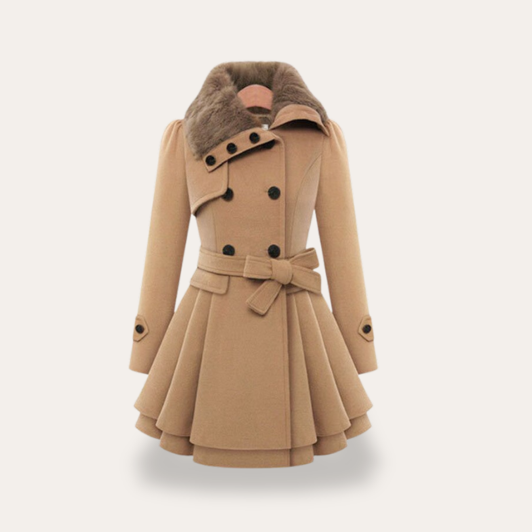 Damen Wintermantel Wollmix Doppelreiher Tailliert Pelzkragen | Vestea
