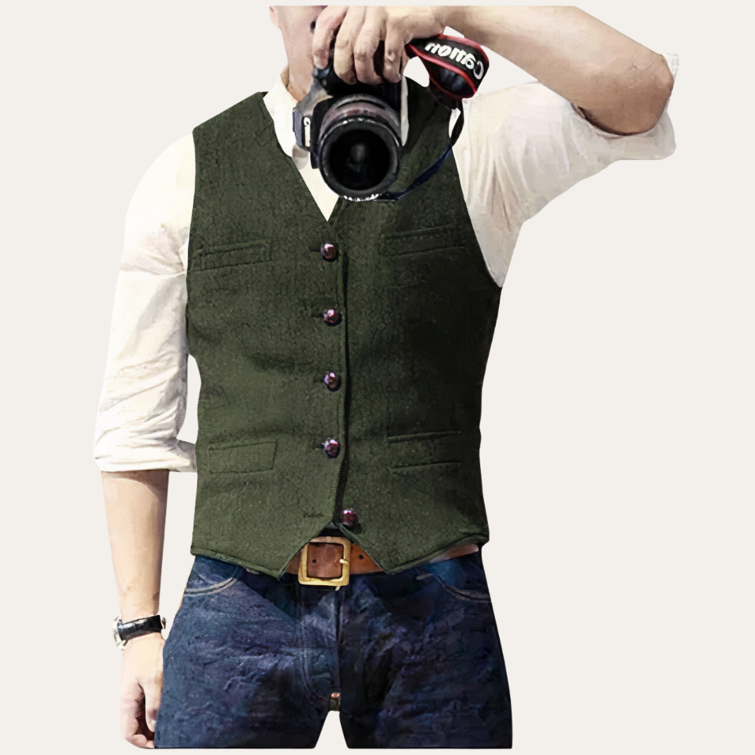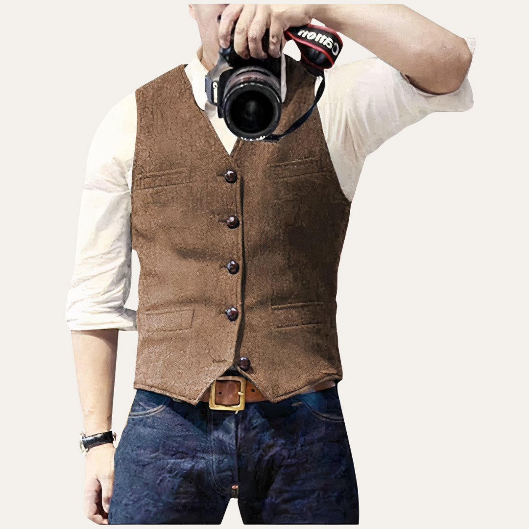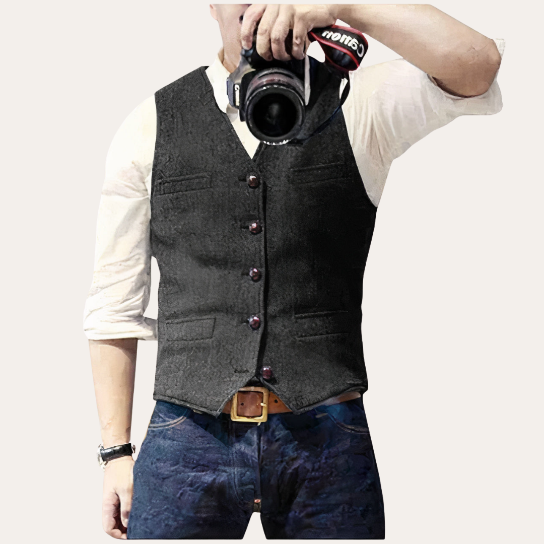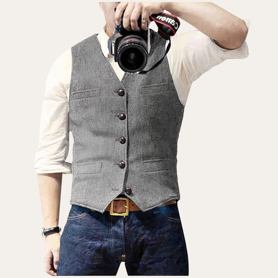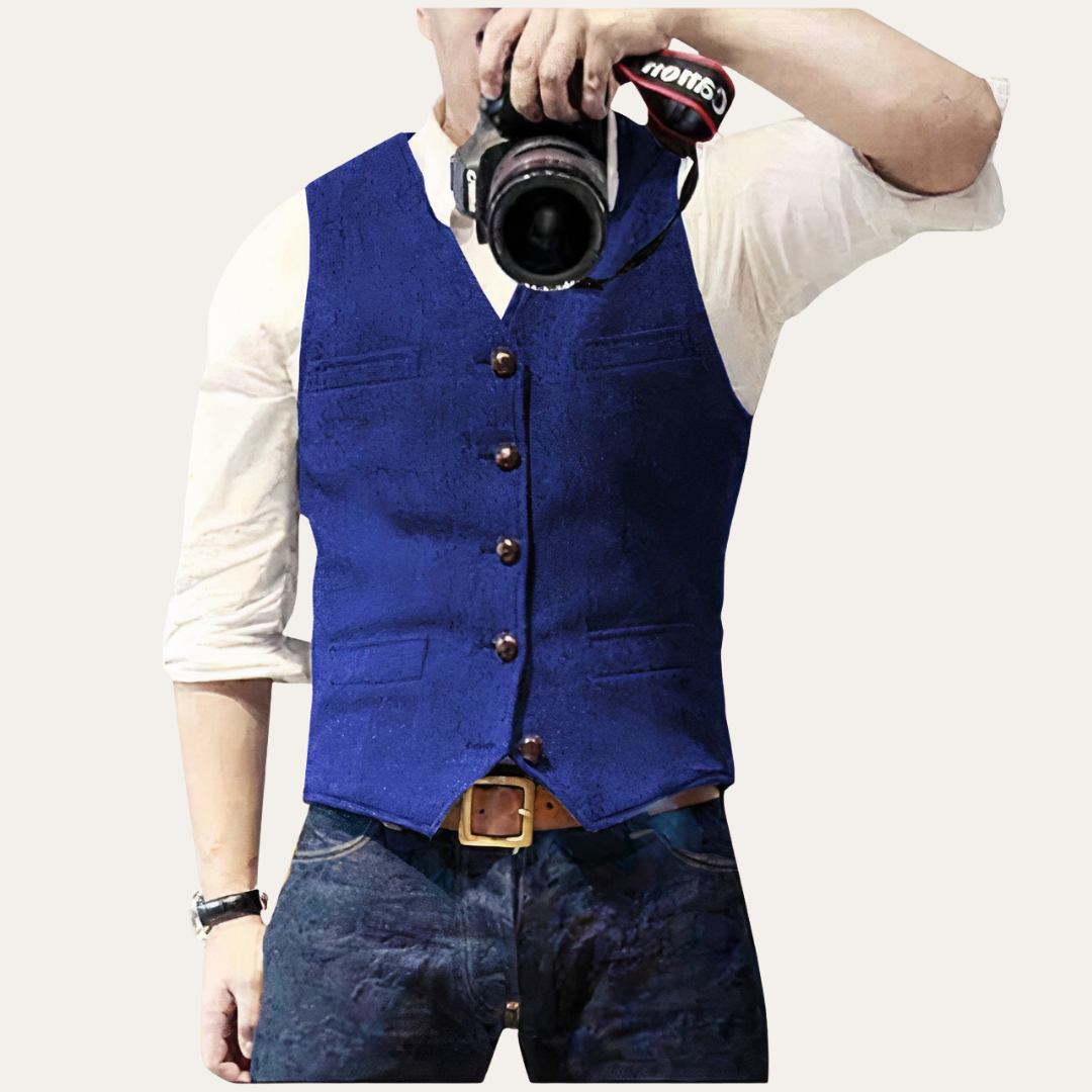 Vielseitig kombinierbar: Tragen Sie die Vestea Weste über einem Hemd für einen Smart-Casual-Look, unter einem Sakko für formelle Anlässe wie Hochzeiten oder Geschäftstermine, oder als eigenständiges Statement-Piece.