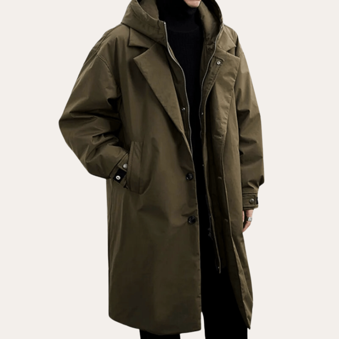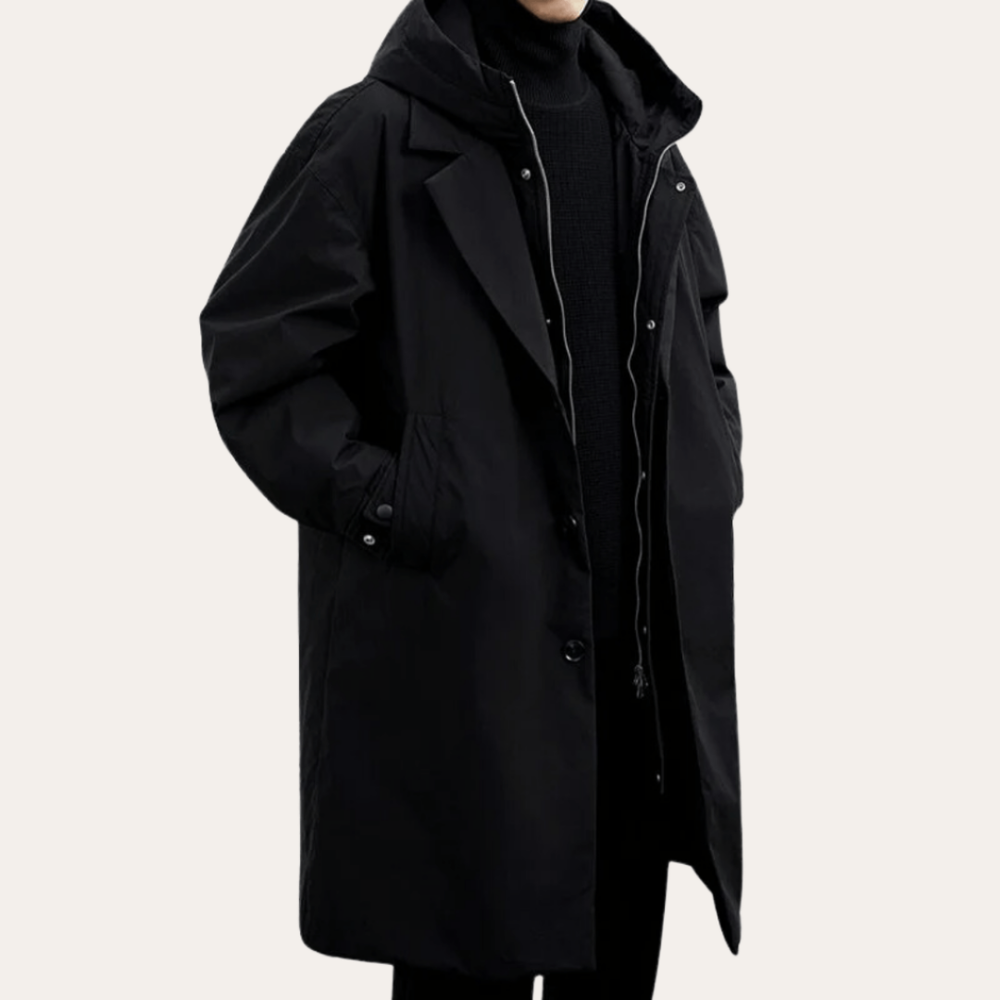 Herren Mantel mit Kapuze Langer Übergangsparka | Vestea