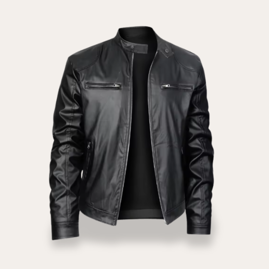 Herren Lederjacke Motorrad Stehkragen | Vestea