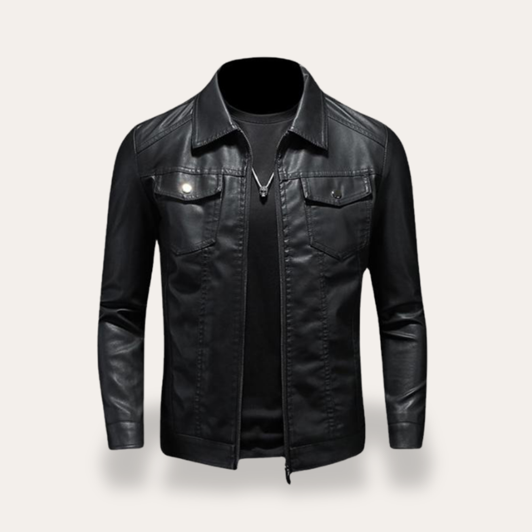 Herren Lederjacke mit Zwei-Knopf-Verschluss | Vestea