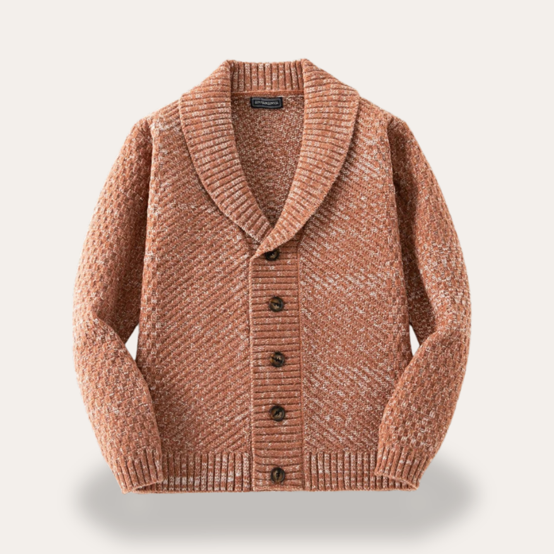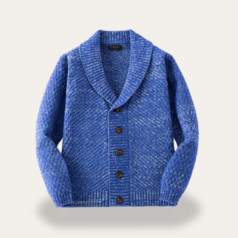 Herren Strickjacke mit Schalkragen und Knopfleiste | Vestea