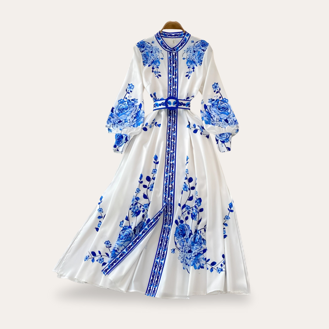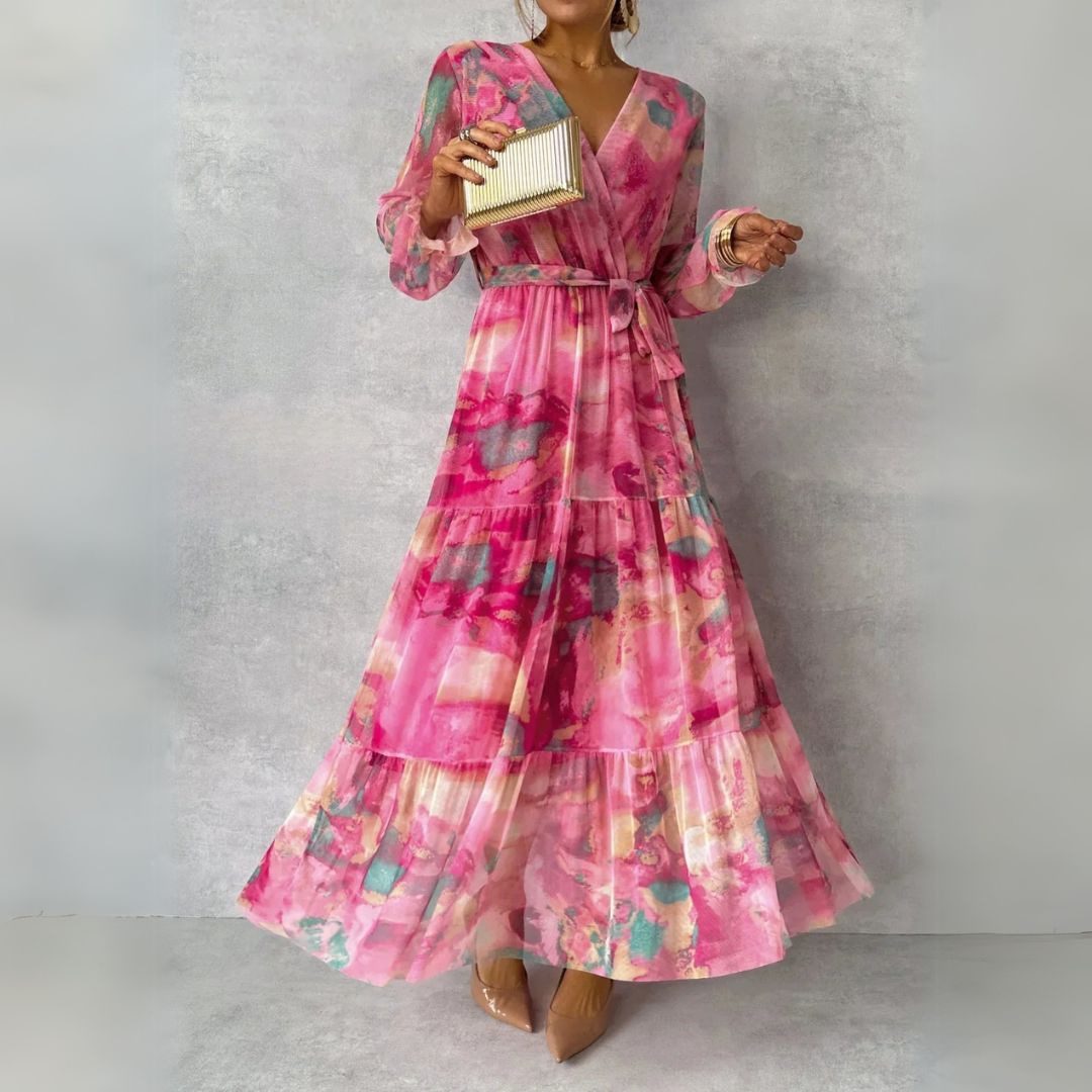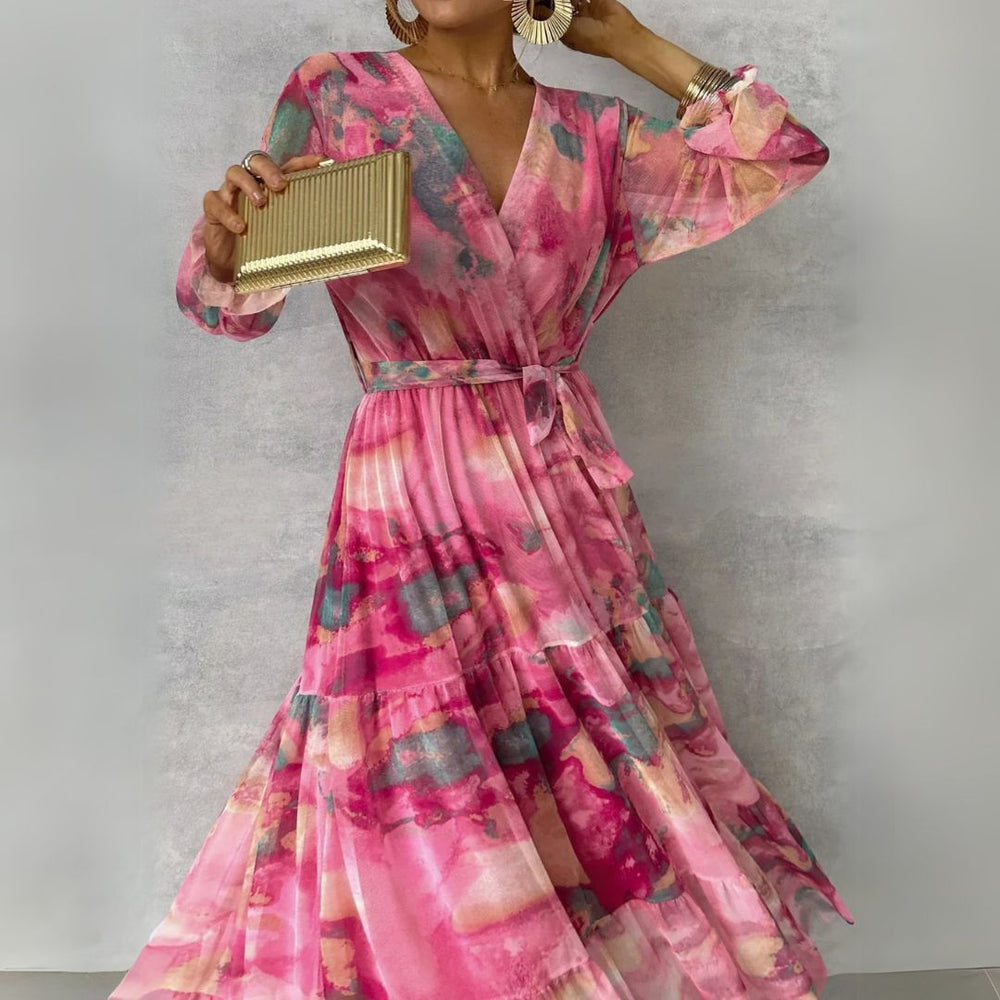 Damen Maxikleid mit Blumenprint und Gürtel Elegant | Vestea