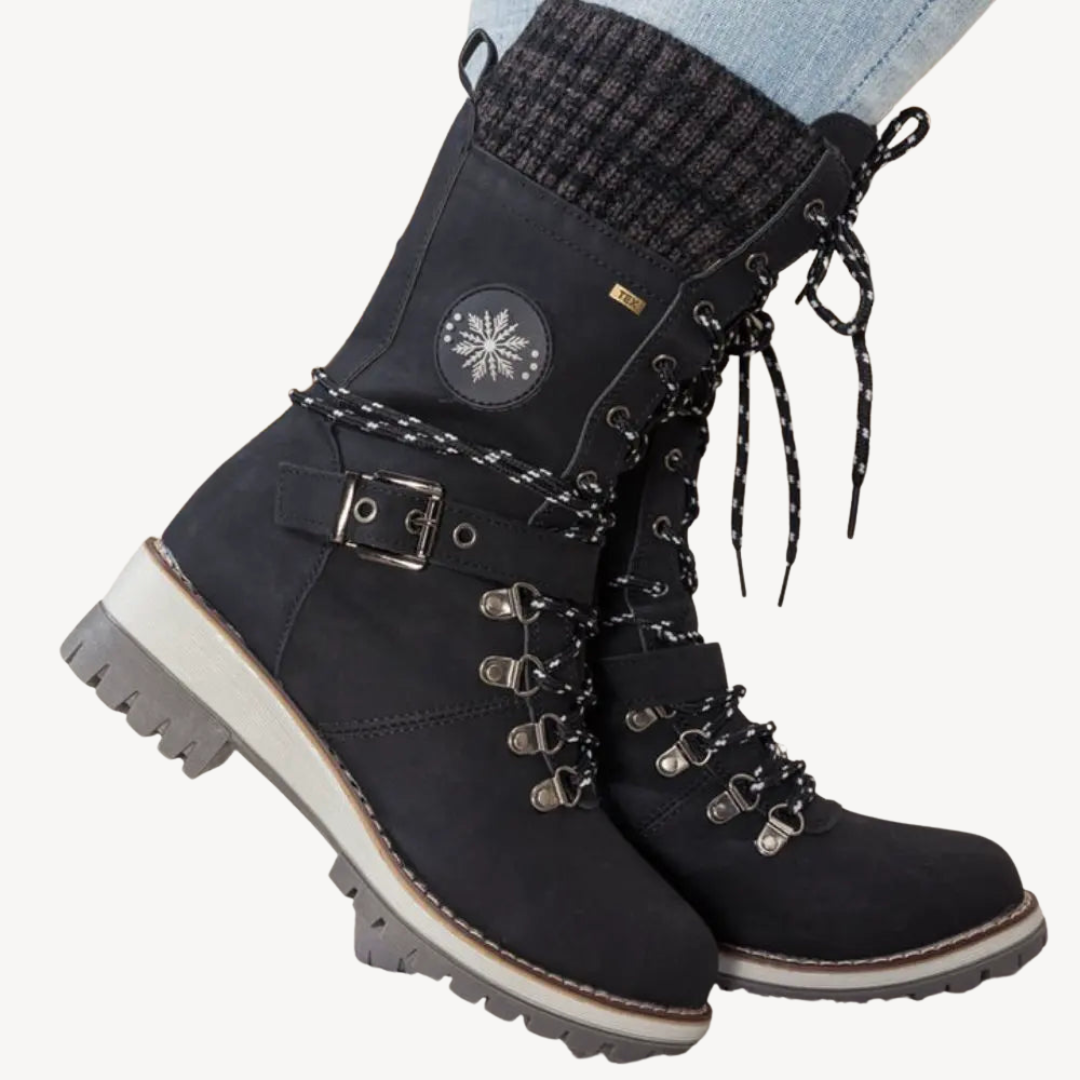 Orthopädische Leder Stiefel mit Schnürung für Damen | Vestea