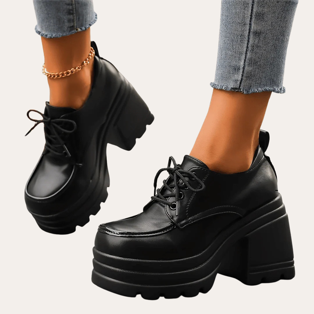 Orthopädische Damen Plateauschuhe Schnürung Kunstleder Absatz | Vestea