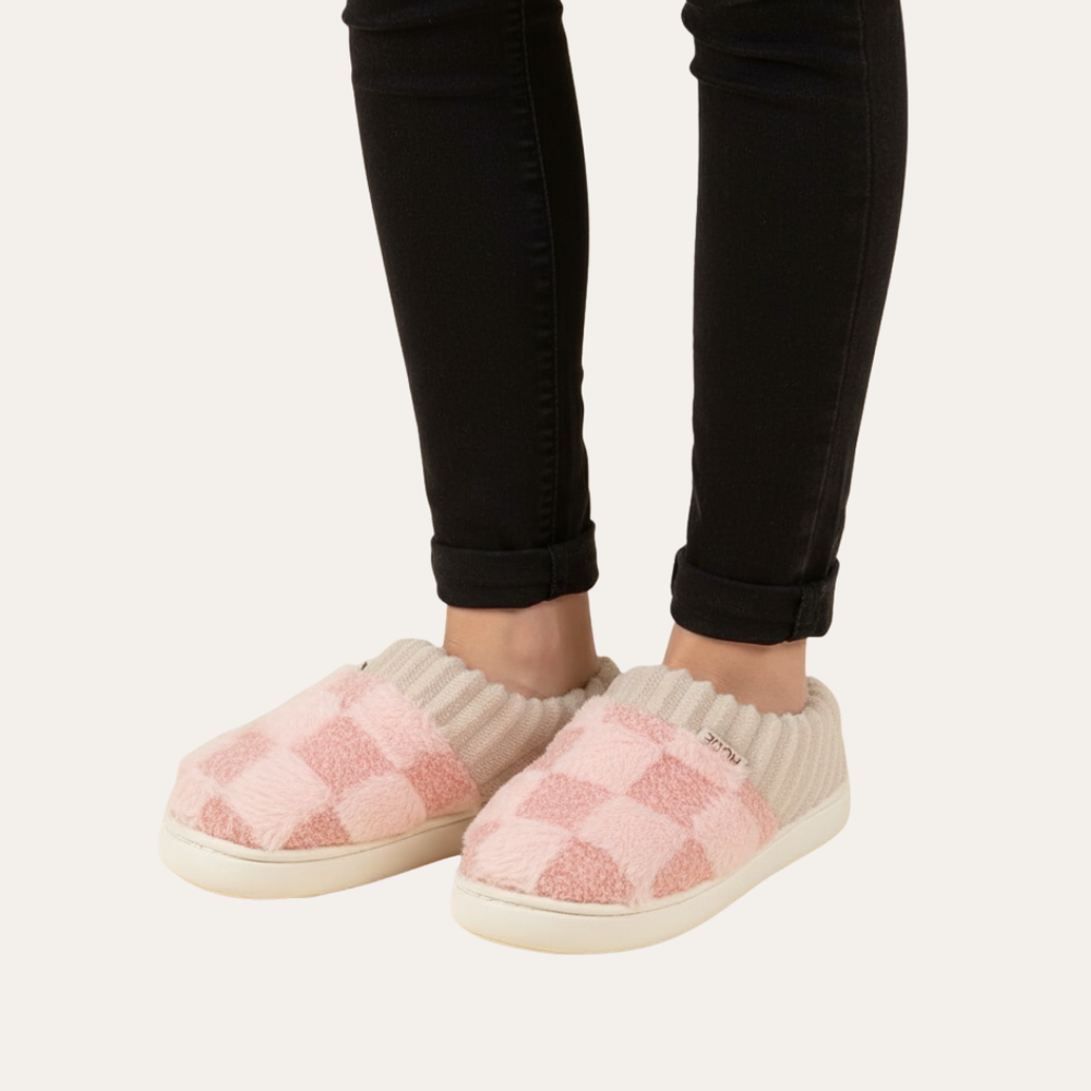 Orthopädische Damen Hausschuhe mit Karomuster | Vestea