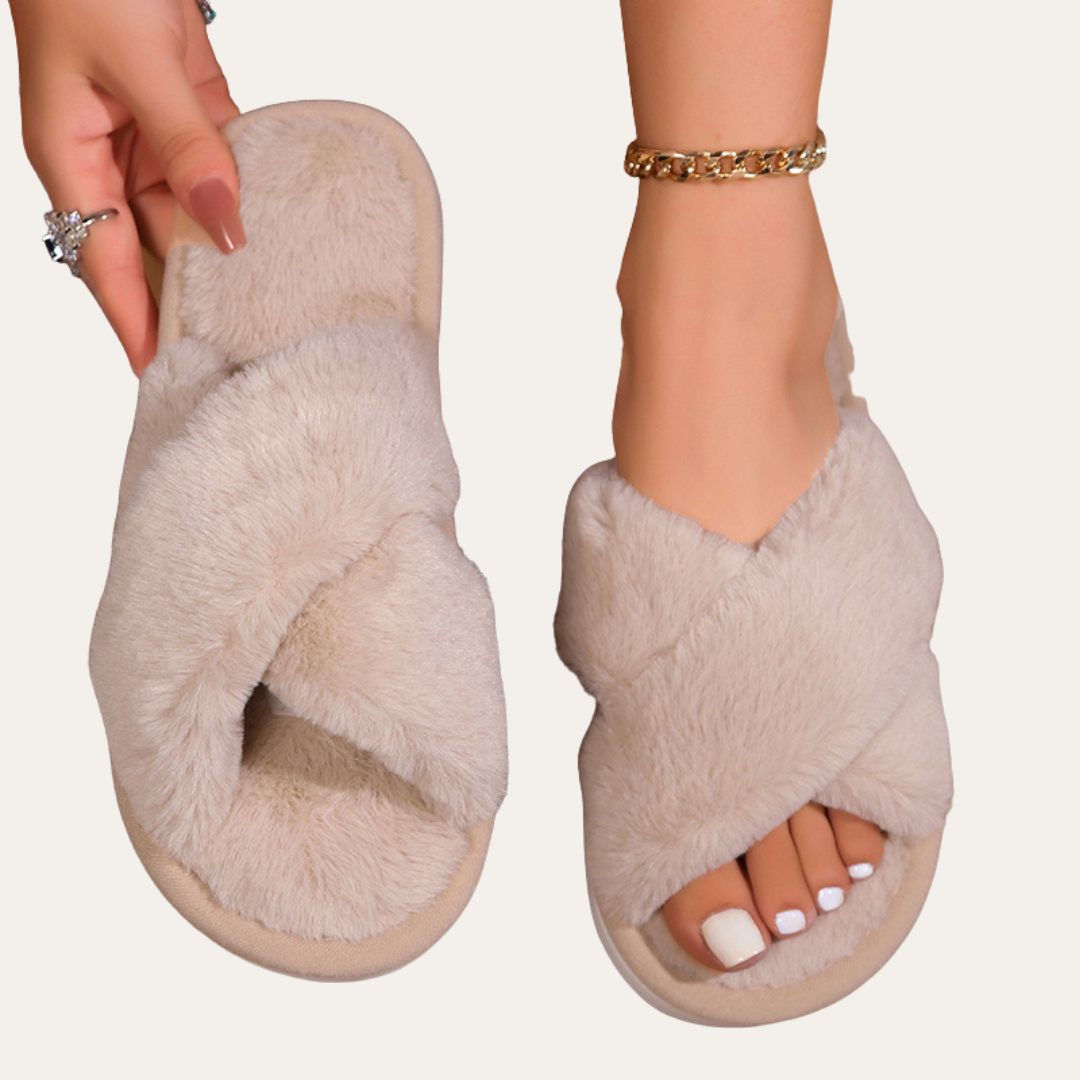 Damen Orthopädische Plüsch Hausschuhe Kreuzriemen | Vestea