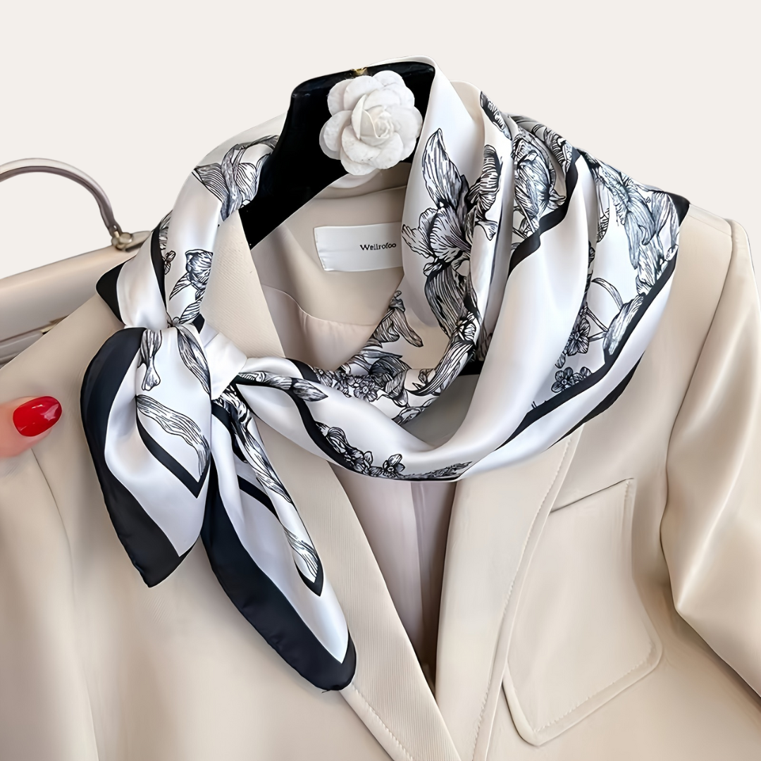 Damen Seidenschal Schwarz-Weiß Blumenmuster | Vestea