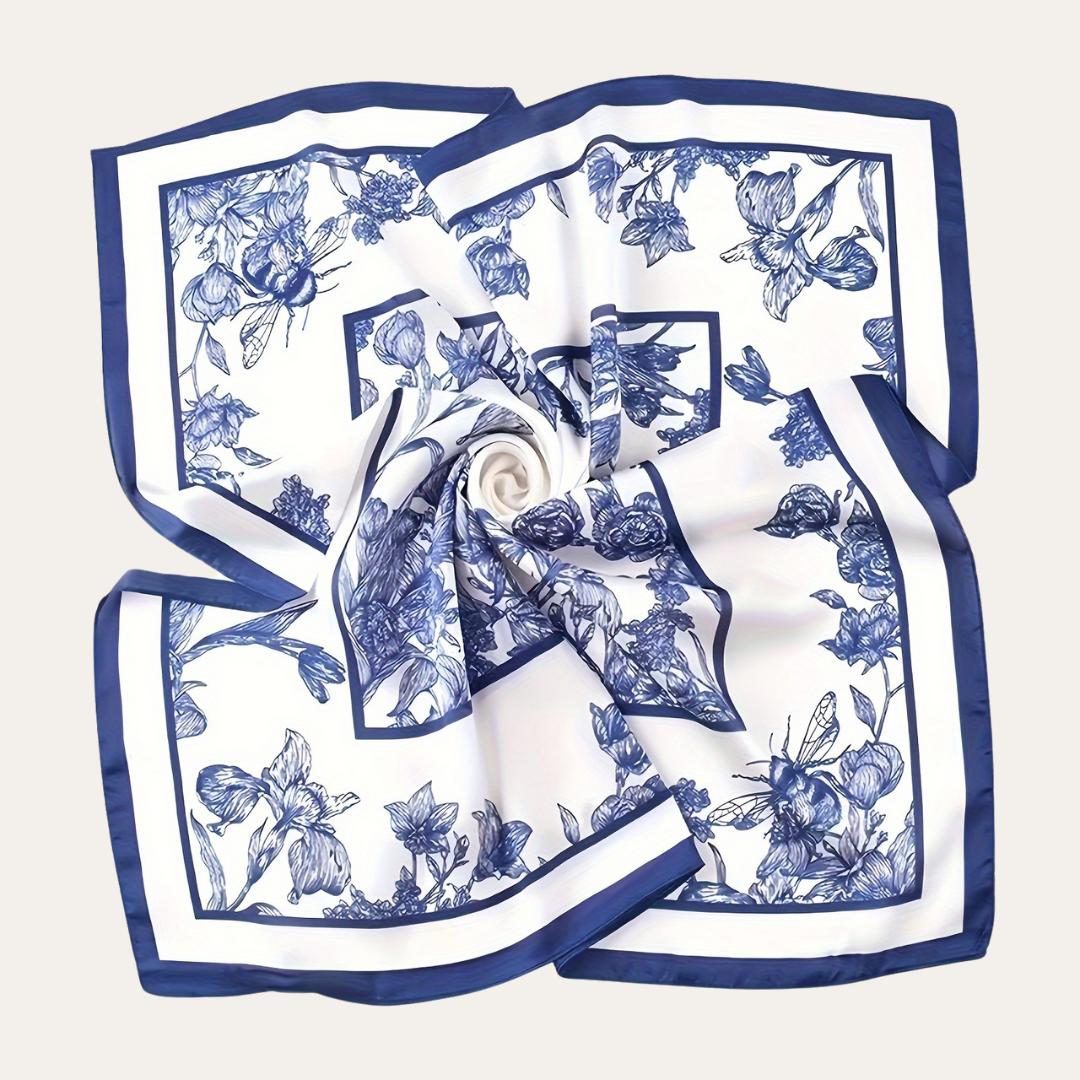 Der Vestea Damen Seidenschal in Schwarz-Weiß ist ein vielseitiges Accessoire für verschiedene Outfits. Hergestellt aus seidenähnlichem Polyester, liegt der Schal weich auf der Haut und ist angenehm zu tragen. Das Blumenmuster kombiniert mit schwarzen Streifen verleiht dem Schal einen dekorativen Akzent. Er kann als Halstuch, Haar-Accessoire oder an einer Handtasche getragen werden.
