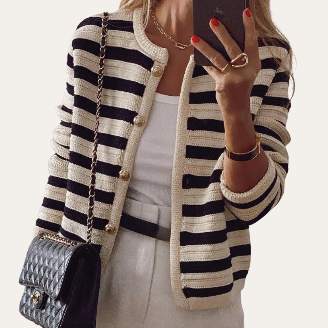 Damen Strickjacke mit Streifen Knopfleiste | Vestea